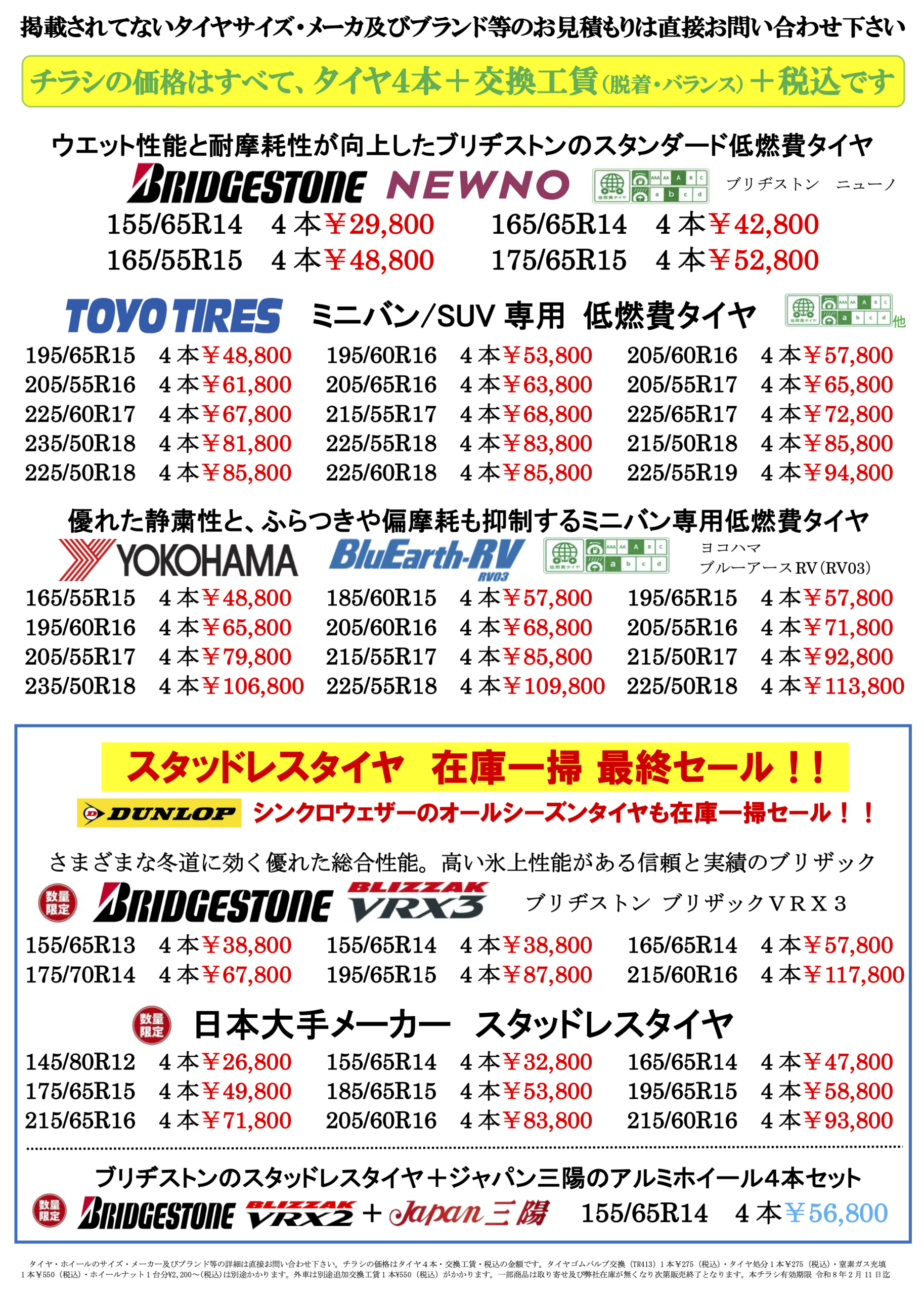 只今、タイヤ祭のセール開催中!!